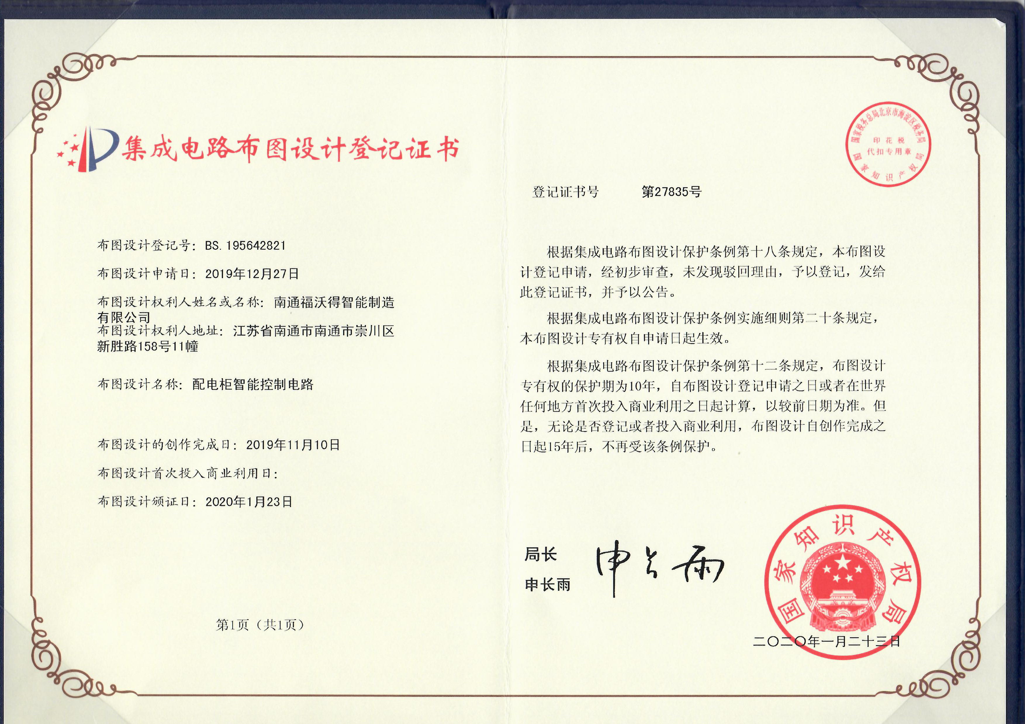 集成电路布图设计登记证书
